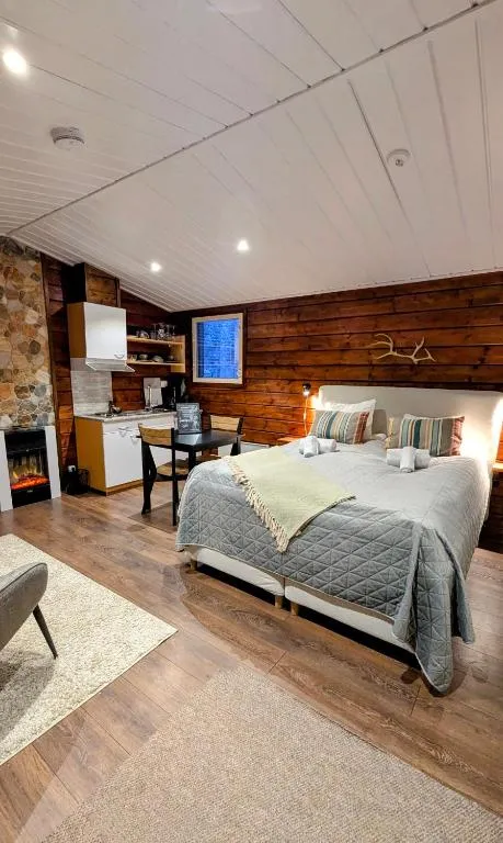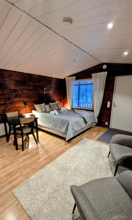 Location, good connection to the cross-country ski trail network, close to the bus, bedroom furniture, nice staff at reception